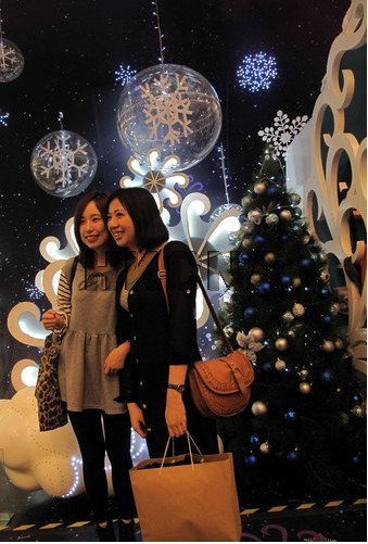 圣诞临近,香港名大商场都耗资装饰迎接购物旺季。11月17日,顾客在一商场内的水晶般闪闪发光的灯饰拍照,充满节日气氛。香港中通社图片