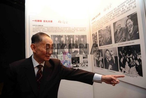11月18日,著名京剧艺术大师梅葆玖出席《双甲之约》——香港站新闻发布会。梅葆玖在场观看了父亲梅兰芳的图片。香港中通社图片