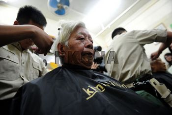 1月5日,香港在囚青少年在老师的指导下为长者理发,并向长者表达敬意。当日,惩教署与香港耆康会合办的“飞短留长”青少年在囚人士义工活动举行,港岛童军第221旅的童军参与活动,他们目前正在接受发型设计班的训练。香港中通社图片