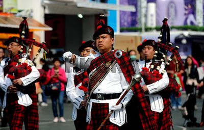 1月4日,享誉世界的香港警察乐队风笛队、鼓队在香港工展会上,以步操及其独特的表演方式演奏多首中外乐曲,营造节日喜庆气氛。香港中通社图片