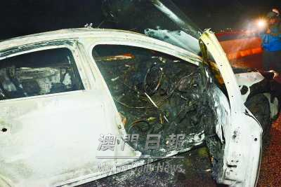 澳门一“黑的”被火吞噬 乘客司机急逃离车如废铁