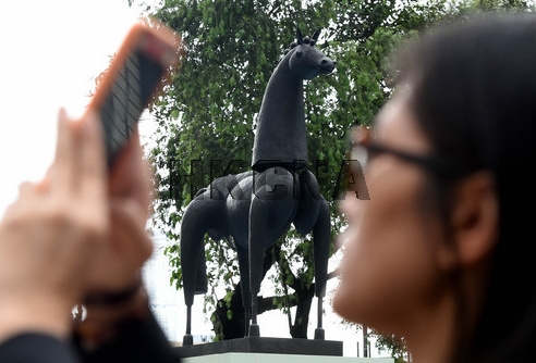 5月13日,法国雕塑家尚-马理•费欧理大型公共雕塑《马之丰碑》在香港皇后像广场展出。该展览由法国著名画廊杜梦堂与法国驻港澳总领事馆携手呈现,并作为“法国五月”展览之一与香港市民见面。香港中通社图片
