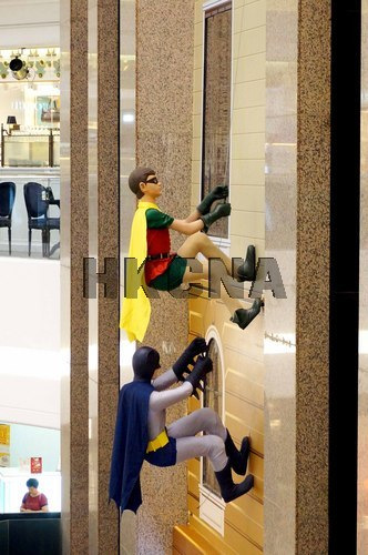 6月19日,香港时代广场变身为蝙蝠侠精品展场景,1960年代蝙蝠侠经典电视系列中真人大小的蝙蝠侠及罗宾攀爬而上。时代广场与华纳兄弟及DC娱乐公司携手呈献《蝙蝠侠75周年纪念展览》由6月20日起至7月20日 。香港中通社图片