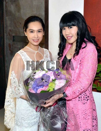 香港艺人朱茵出任一家护肤品牌中国区代言人。拍摄当日,朱茵(左)全情投入拍摄硬照广告。香港中通社图片