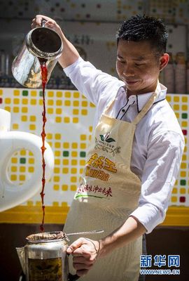 参与互动(0)7月28日,港式奶茶师在香港铜锣湾街头展示冲调技艺。