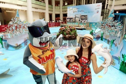为宣扬保护海洋信息,香港奥海城8月9日起至31日与海洋公园及“护鲨行动”连手呈献“护鲨•爱海洋”保育主题展览,200条纸制的小鲨鱼及3D立体巨型海洋地贴,配合流动水影效果、海洋音效和立体七彩珊瑚群,令顾客犹如漫步水底世界。香港中通社图片