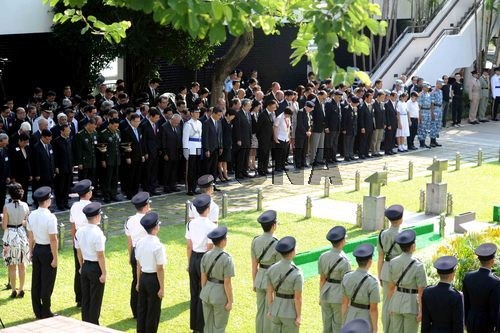 9月3日,香港特区政府上午在香港大会堂纪念花园出席官方仪式,纪念中国人民抗日战争胜利。仪式包括奏唱国歌、鸣枪致敬、默哀和献花圈。 出席人士包括行政长官梁振英、全国政协副主席董建华、中央驻港联络办主任张晓明、解放军驻港部队、及退伍军人团体等,合共约700人。香港中通社图片
