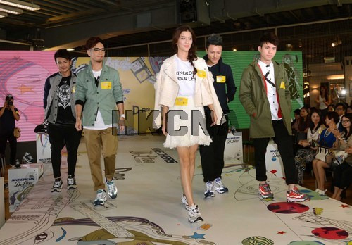 9月18日,艺人吴千语与乐坛男团组合C AllStar四子在香港出席鞋履产品代言活动,以最潮的韩风造型打扮压轴登场走秀,为代言产品宣传。香港中通社图片