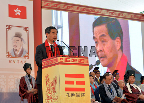 9月21日,香港特区行政长官梁振英出席孔教学院“香港孔圣诞日”暨“孔历二五六五年孔圣诞环球庆祝大典”。香港中通社图片