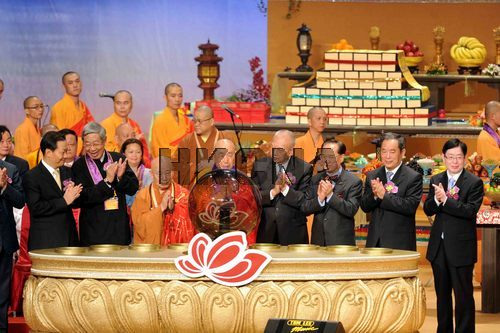 图为2012年4月26日,觉光长老参加第三届世界佛教论坛开幕礼数据图片。香港中通社图片