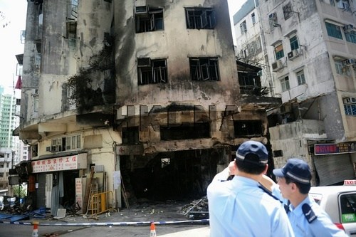 5月3日,造成3死9伤的香港黄大仙环凤街一车房爆炸事故,发生一星期,事故现场仍未完全解封,继续有警员看守。香港中通社图片