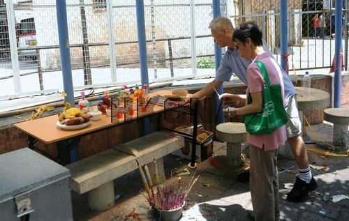 5月3日,造成3死9伤的香港黄大仙环凤街一车房爆炸事故,发生一星期,现场仍未完全解封。当天早上,有大厦业主及区议员安排公祭,让街坊及住客前来上香拜祭。香港中通社图片