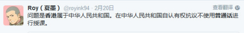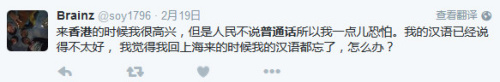 有赴港读书的大陆学生认为,来香港的时候很高兴,但是不说普通话所以有点恐怖。现在汉语已经说得不太好,害怕回大陆的时候汉语都忘了。也有网友支持香港人反对普及普通话的正当性。【记者 初晓慧】
