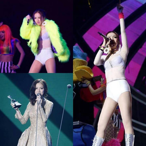 以为无“视觉惊喜”之际,邓紫棋随后上台表演时,再次上演“尿片Look”强化版,既穿上黑色热裤和鱼网丝袜,再在热裤前竟加上灰银色的长布。
