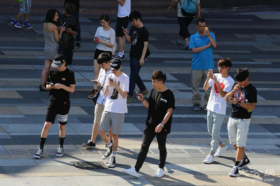 人气手机游戏Pokemon Go登陆香港,不少年青人不怕炎炎夏日,纷纷走上街头。(香港《大公报》/何嘉骏 摄)