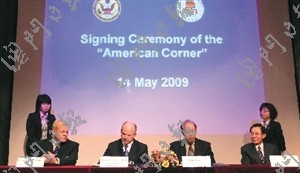 唐若文14日上午11时为澳门大学主讲“澳美关系的回顾及展望”讲座,并在讲座开始前,与澳门大学校长赵伟签署澳门大学图书馆美国坊合作备忘录。有关合作备忘录是接续为期5年的合作,美国坊内馆藏丰富,包括有关美国研究的书籍3000多册、美国杂志期刊超过30种,以及其它影音数据等。此外,美国坊经常举办有关美国研究的讲座、升学讲座等。