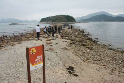市民到达后,可沿途慢步连接两岛的连岛沙洲,观看有趣的怪石,例如被风化侵蚀得好像菠萝包的石英二长岩,以及码头附近的火山角砾岩,更可饱览牛尾海和清水湾半岛美景。不过,渔护署提醒游人,须注意连岛沙洲在潮涨时,水深可及膝或至腰间,市民出发前应先到天文台网页,查询潮汐涨退时间。
