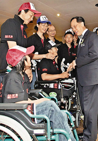 中新网5月13日电 据香港《文汇报》报道,在地动山摇后的一片颓垣败瓦中,他们纵使伤痕累累,依旧坚强地“站起来”,活出生命的精彩。在参观“蜀港同心 大爱无疆──汶川大地震一周年纪念图片展”后,香港特首曾荫权伉俪、中联办主任高祀仁与在地震中因肢体损伤而截肢的多名伤员逐一握手与交谈,简单的“打气”鼓励。