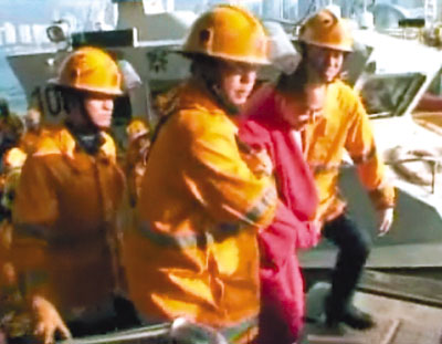 约10分钟后,一艘货船驶经,船员发现有人在海中漂浮,误以为他意外堕海,立即报警及将他救起送返尖沙嘴公众码头。救护员再将他送往医院治理,其间他一直面露笑容,警方未能确定他是否精神有问题,正联络其亲友了解。