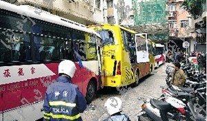 中新网11月19日电 据澳门日报报道,澳门同安街17日上午发生的三旅游巴连环相撞交通意外,截至18日仍有3名伤者留医,包括一名男司机和一对夫妇。意外疑因有旅游巴刹车系统失灵所致,意外导致45人受伤。