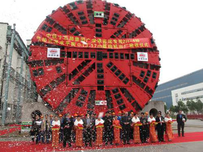 该机将在3个月后正式在深圳段投入隧道施工使用。据悉,这将是中国铁路建设史上使用的最大直径的盾构机器,预计深圳段盾构工程将于2012年贯通。
