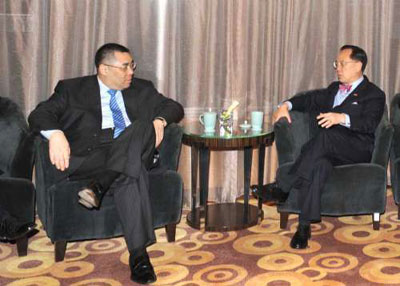 中新网3月4日电 据香港中通社报道,香港特区行政长官曾荫权及澳门特区行政长官崔世安3日下午抵达北京后,两人共进晚餐。曾荫权及崔世安将列席5日全国人大会议开幕式。
