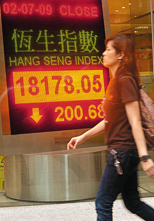 中新网7月3日电 据香港《文汇报》报道,港股下半年开局不利,2日早段曾裂口高开402点,但升幅逐步收窄,尾市竟然大插水倒跌200点,令恒指连跌两天,走势出现两支大型阴烛,对后市走势相当不利。
