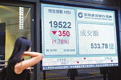 中新网9月3日电 据香港《文汇报》报道,A股刚见回稳,美股又展开新一轮跌势,道指周二晚跌185点,纵使A股回升1.1%,但仍无阻港股再挫。恒指2日低开312点后,最多跌446点,全日收报19522点,跌350点,跌幅1.8%。