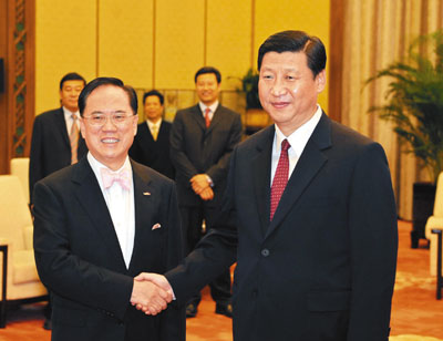 中新网9月30日电 据香港《文汇报》报道,主管港澳事务的中共中央政治局常委、国家副主席习近平29日下午在见证大亚湾核电站延长合营期签署仪式前,与香港特首曾荫权短暂会晤。
