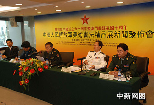 中新网9月18日电 (记者 毕永光)由中国人民解放军总政治部宣传部主办的《庆祝新中国成立六十周年暨澳门回归祖国十周年中国人民解放军美术书法精品展》,将于今年9月26日在澳门隆重开幕。这将是中国人民解放军首次在澳门举办大型美术书法展。