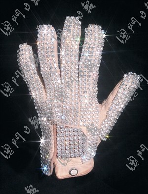 在众多迈克尔杰克逊展品中,最具代表性的要数白色水晶手套。这只镶有莱茵水晶石的手套,最与别不同的地方在于左手套。迈克尔杰克逊一般右手戴手套,由于表演“Moonwalk”舞步时需要用右手做连串动作,包括除帽、将帽向上抛、从后裤袋取梳、梳头等动作,为了令动作更灵敏,迈克尔杰克逊在表演前夕决定,将手套改为左手,所以非常有价值,独一无二,极之珍贵。