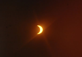 出现最大食分之后,月亮的阴影慢慢淡出,至10时半复原。