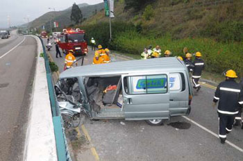 中新网12月16日电 据香港《大公报》报道,香港一辆客货车15日晨在大屿山翔东路发生事故,车先冲向路旁猛撞一条灯柱,再弹回马路,车头严重损毁,车上6名男子全部受伤,其中司机撼穿头流血,并双脚被夹受困,无法动弹,需消防员救出。