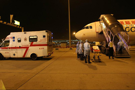 患病乘客随后被送往医院诊治,而与患病者有紧密接触的乘客和机组人员则被送往机场禁区的临时等候区。患病乘客被确诊感染传染病后,卫生署亦对与患者有紧密接触的乘客和机员进行检疫。