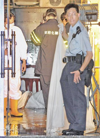 自焚身亡男子伍伟忠,55岁,其衣服几被烧光,身体烧至皮开肉烂,当场证实死亡。警方把案件列作纵火案处理,交由东区重案组跟进,探员到场检走大量证物,包括一个涉案玻璃瓶,也在死者身上检获工业安全机构发出的证件,初步相信死者生前在地盘工作。