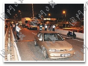 此时左边行车线有一辆MH49XX号白色大型货斗车刚驶至,男司机见状仍收掣不及,撞及横亘路上的电单车,女骑士和女乘客惨被卷入车底。其中一人疑身体和头部被货车右前巨轮辗过,上下半身被辗至断开,头颅爆裂,血肉模糊,当场惨死,路上留下一条长约2米的血肉痕迹,怵目惊心。另一名女子下半身则惨被车轮辗至粉碎性骨折,情况危殆。