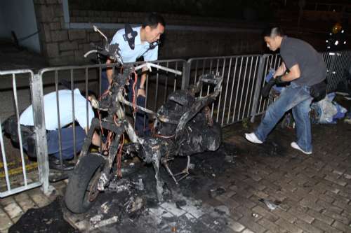 中新网11月5日电 据香港《大公报》报道,香港东涌逸东邨4日凌晨发生电动自行车纵火案,停泊天桥底多辆电动自行车突然着火焚烧,浓烟冲天火光熊熊,并传出多响爆炸声,消防员到场开喉将火扑熄,共十三辆电动自行车严重焚毁,幸无人受伤。