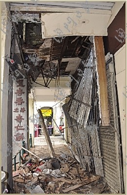 据现场消息称,8日上午9时许,街坊突闻十月初五街与新马路交界发出巨响,四出查看,发现新马路一栋两层高旧楼的一楼骑楼倒塌,大量木块、铁块和杂物覆盖整段行人路,幸意外发生时没有途人经过,否则不堪设想。