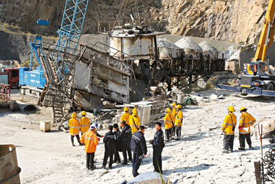 事发现场为秀茂坪安达臣道石矿场,荒置一年多,及至最近,承办商开始按计划清拆场内多部巨型碎石机,准备运走。