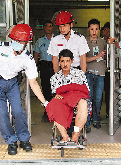 昨日下午3时50分左右,有人又再登门旧事重提,叶准妻应门,称丈夫不在家,企图打发他离开,未料对方突告情绪激动,在走廊跨过约4呎高栏河,扬言跳楼,街坊见状报警。警员接报迅速到场,并趁其不备,一拥而上将他制服,混乱间其脚部擦伤,需送院敷治。