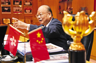 刚走进曾宪梓的办公室,就看见75岁的他锁上眉头架起眼镜说,“刚从井冈山参观考察回来,此行很有意思,却很疲倦”。但娓娓道起与共和国同行的历程、祖国的辉煌成就,他的声音又嘹亮起来、话题也从“没有新中国,没有今天的我”说起。