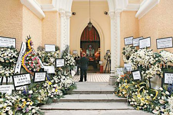 为遗体扶灵的人士包括有富商郭炳江、郑海泉及李国宝等,其中郭炳江更站在教堂外良久,直至大部分的亲友先行离开,他才返回座驾由司机送离现场,可见他与已故者交情非浅。至于李国宝完成扶灵仪式后,便与太太潘金翠一起离去。