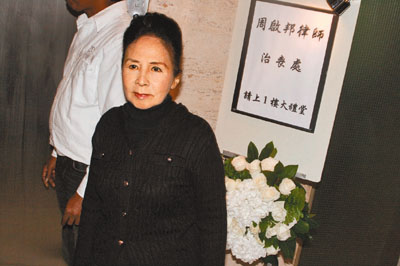 4时10分,周国丰妻子及刚满月的儿子周礼淳到达殡仪馆,囝囝刚满月,不宜逗留太久,只到一到。约5点20分,周启邦遗孀谭月清到达殡仪馆,并透露选了四季不同的衣服给亡夫陪葬,又会烧楼烧车给亡夫。问到其心情如何?她坦言已平伏些,更赞儿子好乖,会陪她吃饭,孙儿好得意。问她想对亡夫讲什么?她即说:“好挂住他,没有人可以代替他,永远怀念他!”