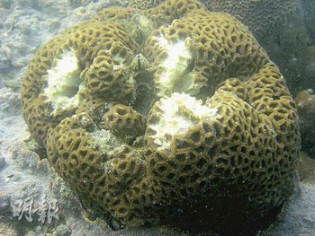 中新网2月2日电 据香港《明报》报道,蕴藏丰富海洋资源的香港海下湾海岸公园,首次发现大量珊瑚遭破坏。香港渔护署于2006年发现园内海底逾300多个珊瑚群落被破坏至“甩皮甩骨”,上面更爬满正享用“珊瑚大餐”的海胆及海螺。