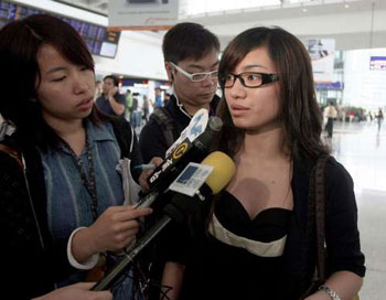 14日的赤腊角机场离境大堂少有出发曼谷人士,已订机票的乘客中,只有约一半成行,多数是泰国人。泰国东方航空的地勤人员表示,14日有一班机飞往曼谷,本来有400多名乘客,但由于大部分旅行团已取消,故只有百多人登机。