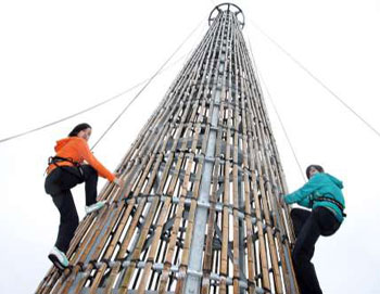 中新网4月27日电 据香港《大公报》报道,香港长洲太平清醮抢包山将于本周六举行,不过主办单位26日举行攀爬嘉年华,吸引不少市民一尝攀爬包山的滋味。