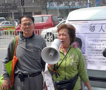 图:叶国镇夫妻两人在广州街头寻儿。(图片来源:大公报)