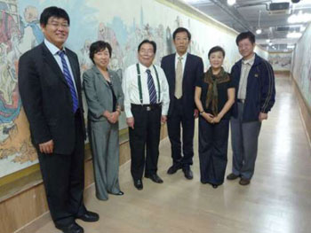 计佑铭(左三)带领众人参观《五百罗汉图》。(图片来源:大公报)