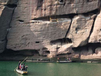 中新网1月6日电 据香港《大公报》报道,来自香港的好奇人士萧旺强,新年伊始现身江西著名风景区龙虎山,以其精心制作的模型在风景区进行现场演示,向游客揭示龙虎山悬棺之谜。