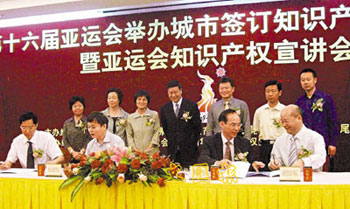 中新网4月23日电 据香港《文汇报》报道,广州、佛山、东莞、汕尾四个第16届亚运会举办城市知识产权局22日在广州共同签署了《亚运会举办城市知识产权联合执法协作协议》,并公布了首批43个受法律保护的亚运会标志。